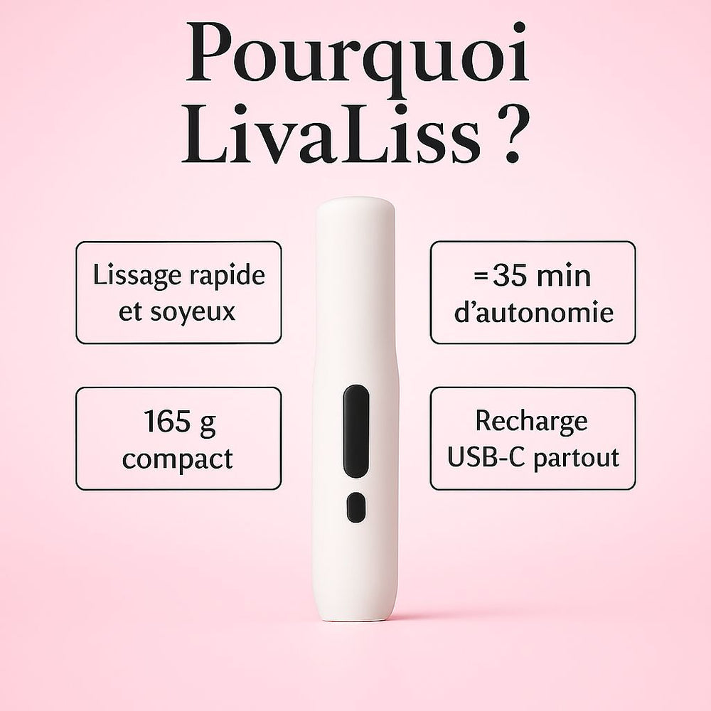 Découvrez LivaLiss, le lisseur sans fil nouvelle génération conçu pour celles qui refusent de choisir entre élégance, rapidité et liberté.Grâce à sa technologie céramique ionique et son design compact, obtenez un lissage professionnel en quelques minutes, où que vous soyez sans abîmer vos cheveux.